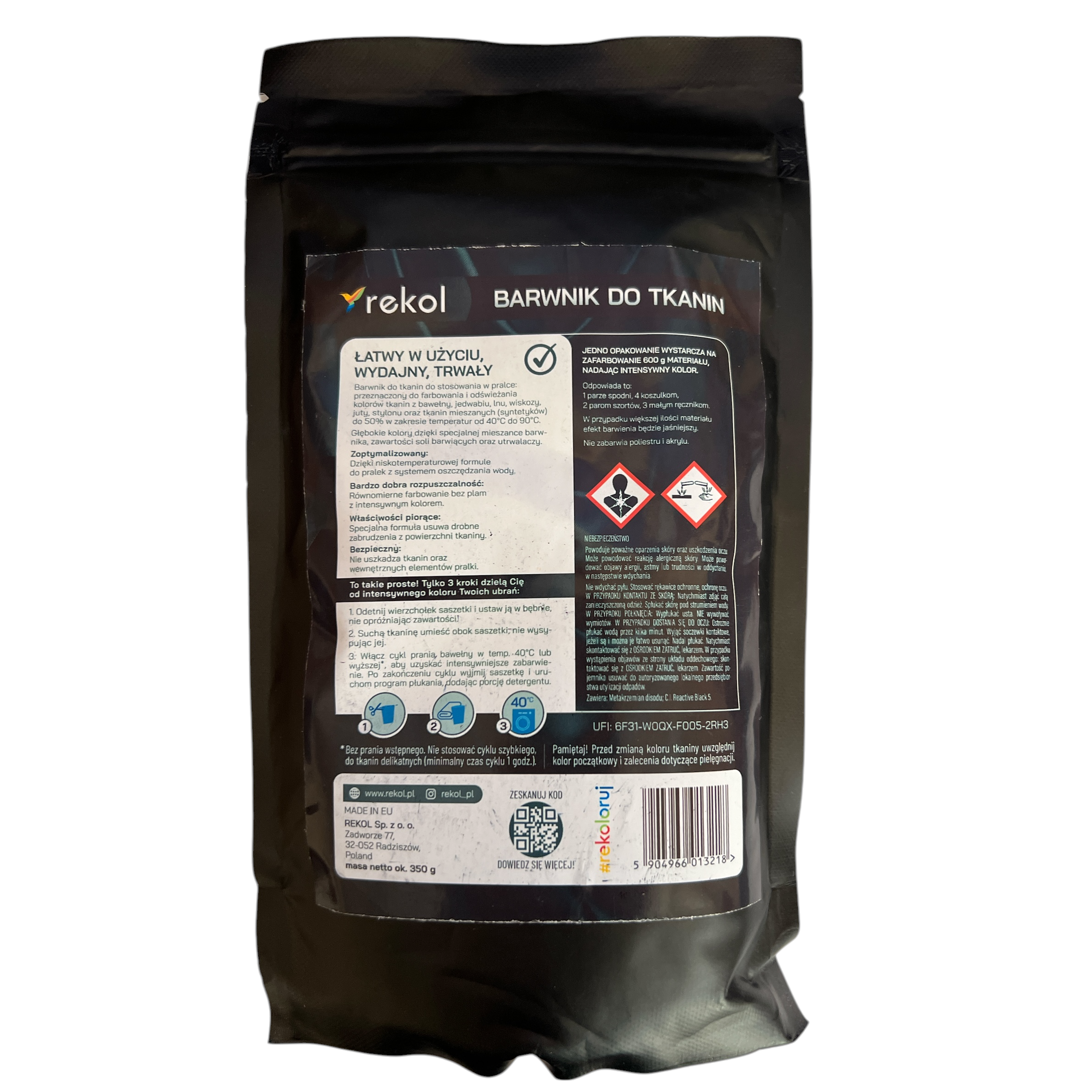 Barwniki do tkanin Rekol są łatwe w użyciu i bezpieczne dla Twojej pralki! Formuła all-in-1 do odświeżenia lub zmiany koloru odzieży i tekstyliów domowych. Tekstylny barwnik do pralki zapewnia doskonałe, długotrwałe i intensywne rezultaty kolorystyczne.