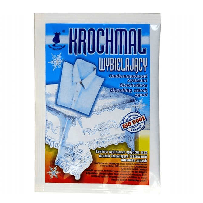 Krochmal wybielający na zimno znakomicie rozpuszczalny w chłodnej wodzie preparat wybielająco usztywniający do płukania. Doskonale usztywnia i wybiela bieliznę stołową, pościelową, zasłony oraz inne tkaniny wymagające krochmalenia. Nadaje się również do wyrobów z kory. Najlepszy efekt osiąga się zanurzając kilkakrotnie tkaninę w przygotowanym roztworze.
