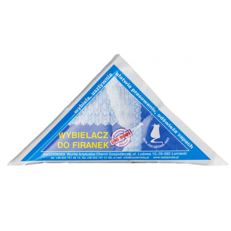 Jest to preparat wybielająco-usztywniający do firanek i wyrobów ażurowych. Znakomicie rozpuszczalny w wodzie o temperaturze pokojowej. Wybiela optycznie i usztywnia uprzednio uprane i wypłukane firanki oraz inne wyroby ażurowe. Nadaje się do wyrobów z włókien naturalnych, syntetycznych oraz mieszanych. W procesie ich ostatniego płukania nadaje im odcień śnieżnej bieli i zapach świeżości.